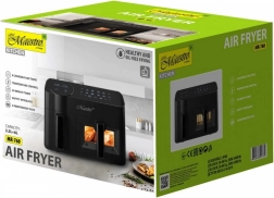 Élvezze a ropogós és egészséges ételeket olaj nélkül a Maestro duplatartályos forrólevegős sütőjével. Kínál 2400 W teljesítményt, két kosarat 3,5 l és 6 l űrtartalommal, 2 független vezérlőrendszert, 8 programot, 80–200 °C hőmérséklet-szabályozást és időzítőt akár 60 percig automatikus kikapcsolással. A tapadásmentes felületnek köszönhetően könnyen tisztítható, az elegáns fekete dizájn pedig bármely konyhába illik.