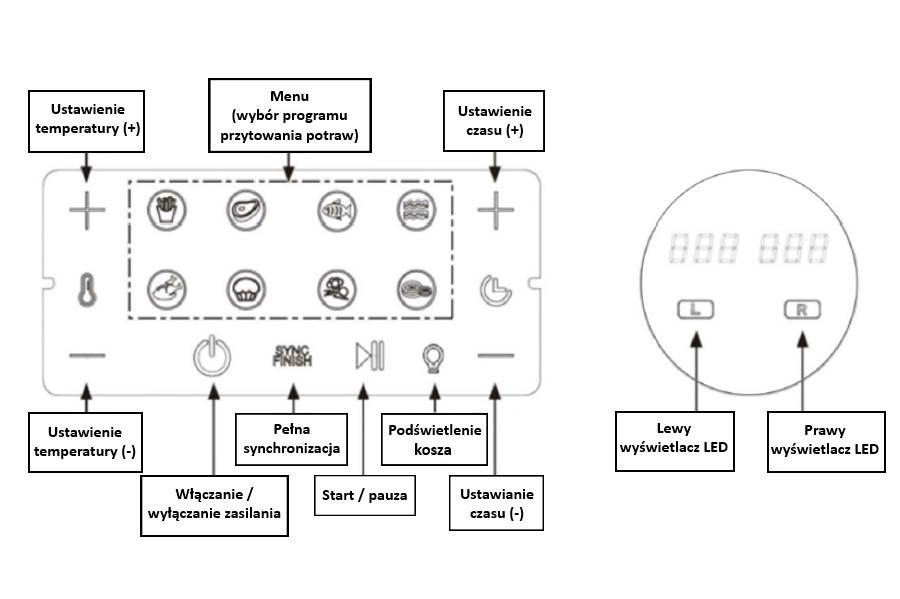 - Duál működés: 2 független vezérlési zóna különböző ételekhez egyszerre