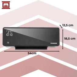 Az elegáns, falra szerelhető KAMINER ZELVION légfüggöny a modern dizájnt erős teljesítménnyel ötvözi otthonokba, irodákba és üzletekbe. Három üzemmódjának (ventilátor / meleg / forró levegő) köszönhetően egész éves használatra ideális. A Wi‑Fi vezérlés (Tuya Smart) és a távirányító lehetővé teszi a fűtés teljes körű irányítását bárhonnan.
