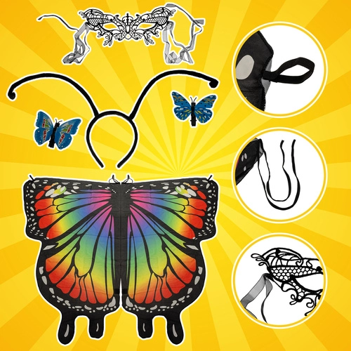 - Teljes szett: szárnyak, szemmaszk, csápos fejpánt és 2 csat