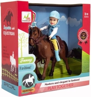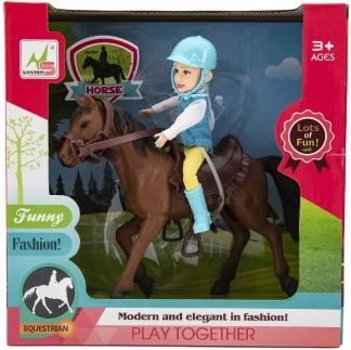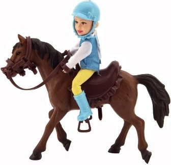 Minden kis lórajongónak örömet szerez a kantárral és nyereggel felszerelt lóval érkező zsoké. A zsokénak lovaglóruhát és sisakot kell viselnie. A ló sörénye és farka nem fésülhető. Minőségi, tartós anyagokból készült. Csomagolás mérete: 23 × 23 × 9,5 cm. 3 éves kortól ajánlott.