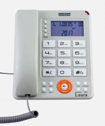 A Mescomp Laura MT-816 a modern megjelenést maximális áttekinthetőséggel és egyszerű kezeléssel ötvözi. A kontrasztállítással rendelkező háttérvilágított kijelzőnek és a nagy billentyűknek köszönhetően időseknek és gyengébb látású felhasználóknak is kiváló. Az irodában hasznos a hívásnapló, a redial és a VIP funkció a fontos névjegyek védelmére.
