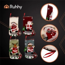 Stílusos RUHHY karácsonyi zoknik 4 darabos szettben, amelyek beragyogják otthonát és varázslatos ünnepi hangulatot teremtenek. Puhák, tágasak és tartósak, ideálisak apró ajándékok, édességek vagy dekorációk csomagolására. A Mikulás, rénszarvas, hóember és mackó motívumok klasszikus karácsonyi színekben szépen kiegészítik a díszítést, és a felakasztható fülnek köszönhetően könnyedén elhelyezhetők a kandallón, korláton vagy a fa mellett.