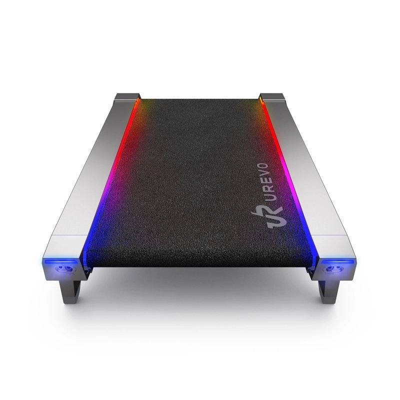A Urevo CyberPad elegáns, asztal alatti futópad mindössze 16,3 cm magassággal, amely könnyen elfér az állítható magasságú asztal alatt. Kínál akár 14%‑os automatikus dőlést az intenzívebb kalóriaégetéshez, csendes 2,5 HP‑s BLDC motort kb. 45 dB zajszinttel és kényelmes 42 × 100 cm‑es futófelületet a természetes sétához.