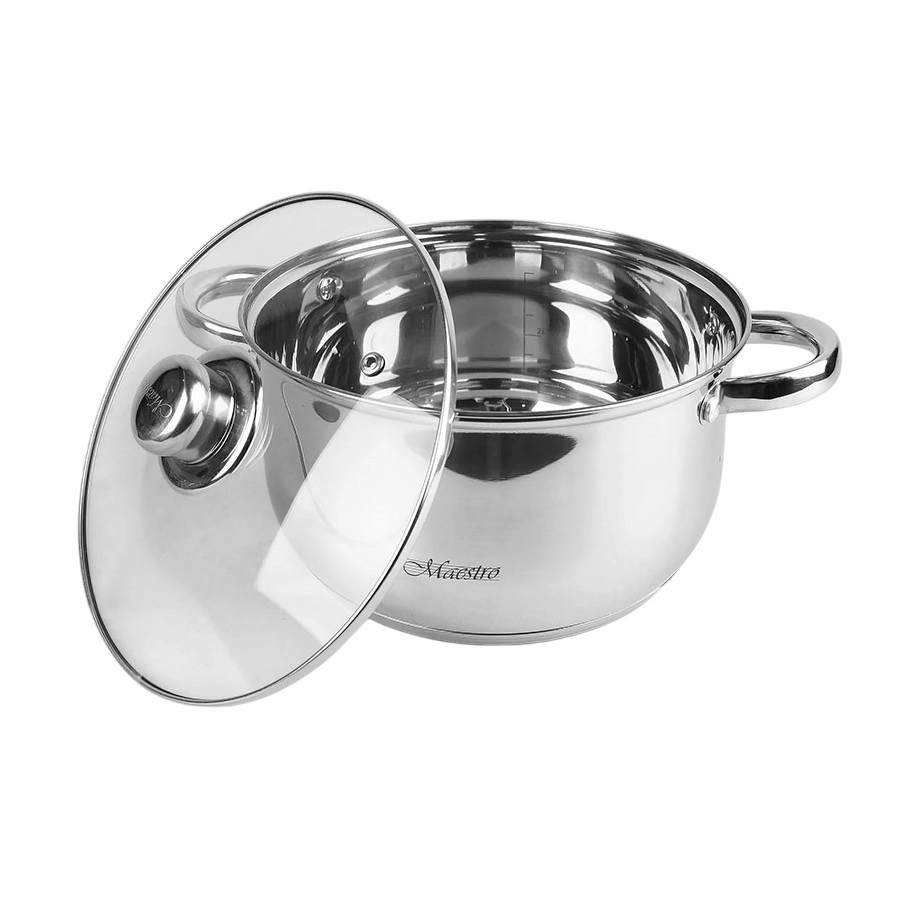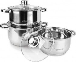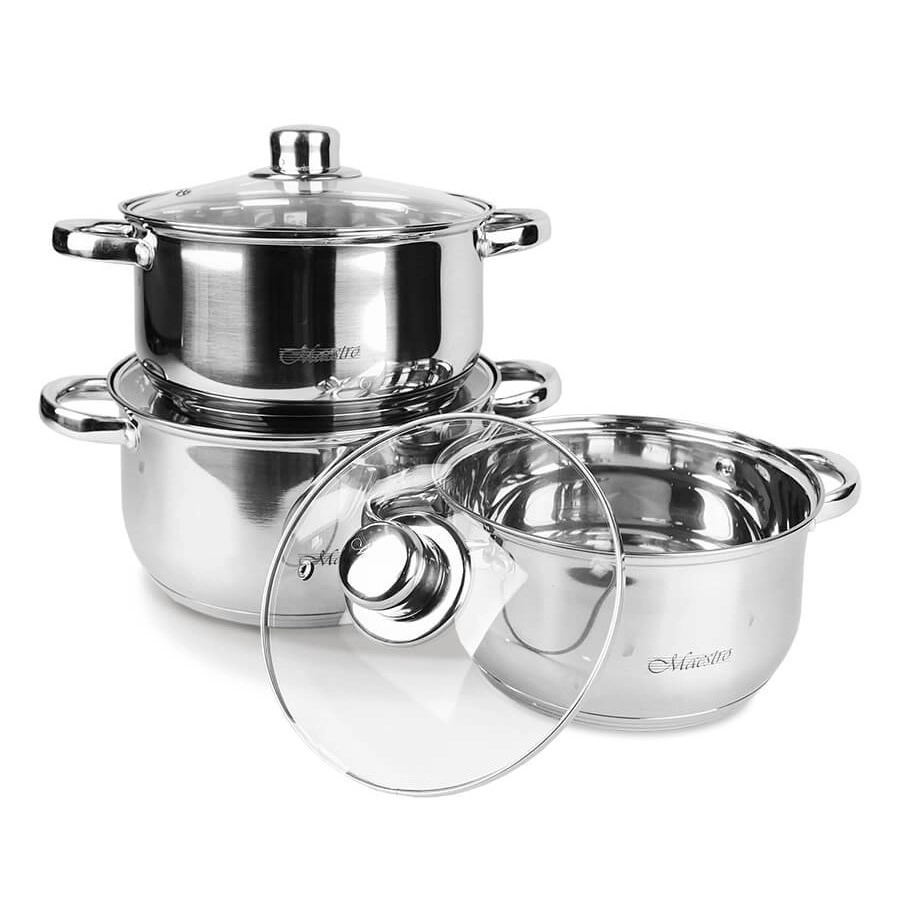 A Maestro 6 darabos edénykészlettel megbízható edényeket kap a mindennapos használathoz. A strapabíró rozsdamentes acélból készült edények könnyen tisztíthatók, a gőzkiömlő nyílással ellátott üvegfedők megkönnyítik a főzés ellenőrzését, a többrétegű hőtárolós talp pedig az egyenletes hőelosztás révén energiát takarít meg.