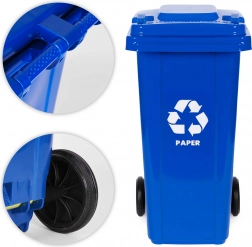 A mobilitást gumikkerekek a fém tengelyen és ergonomikus, csúszásmentes fogantyúk biztosítják. A stabilizáló lábak tartják az edényt a csúszós felületen. Az edények megfelelnek az EN-840 szabványnak és kompatibilisek a kommunális gyűjtőrendszerekkel.