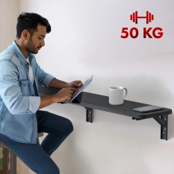 A MACLEAN MC-129 összecsukható polc intelligens, helytakarékos megoldás, amely modern megjelenést ötvöz magas funkcionalitással. A lekerekített sarkú lap és a masszív fémkonzolok stabil felületet biztosítanak könyveknek, dekorációnak vagy laptopos munkához.