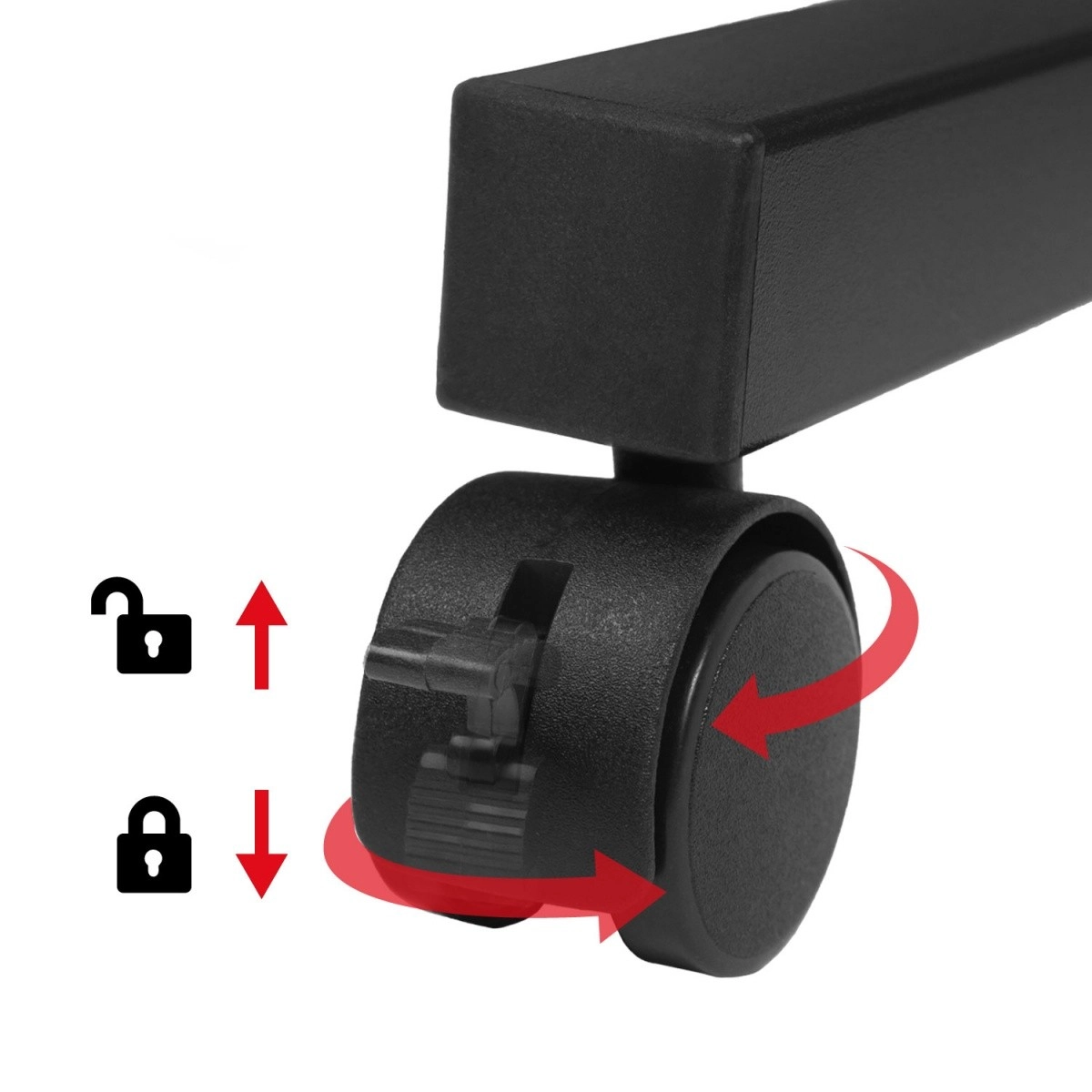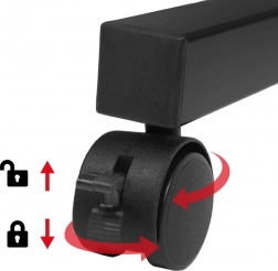 Az asztal könnyen áthelyezhető a helyiségben, majd fékekkel rögzíthető. A 24 × 40 cm-es oldalsó polc tökéletes PC háznak vagy nyomtatónak.