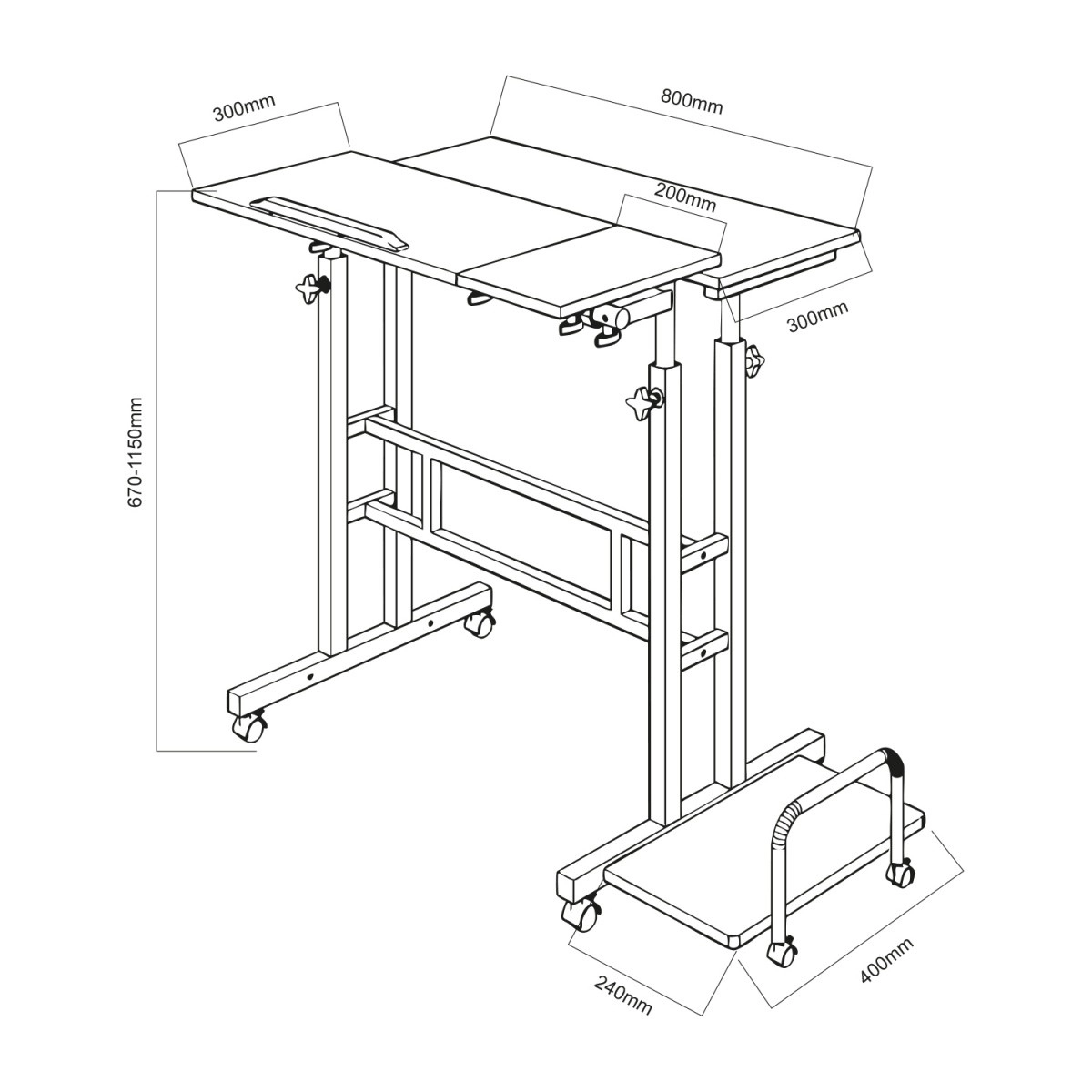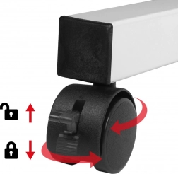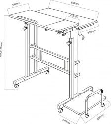 Része egy 24 × 40 cm-es oldalsó polc is, amely ideális asztali géphez, nyomtatóhoz vagy egyéb eszközökhöz. A kerekekkel az asztalt könnyedén oda guríthatja, ahol épp szükség van rá, így rugalmasan alakíthatja munkaállomását. A magasságállítás kb. 67–115 cm tartományban egészségesebb testtartást támogat ülve és állva.