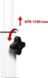 A magasságot könnyedén beállíthatja kb. 67–115 cm tartományban, ezzel támogatva az ergonómiát ülve és állva is.