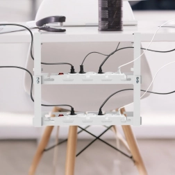 A praktikus, két szintes, asztal alá szerelhető kábelrendező ideális modern munkaállomásokhoz és gamer setupokhoz. A 40 cm-es hossz elegendő helyet biztosít két hosszabbítónak, hálózati adaptereknek, USB huboknak vagy routernek, miközben a nyitott kialakítás megkönnyíti a kábelek vezetését és szellőzését.