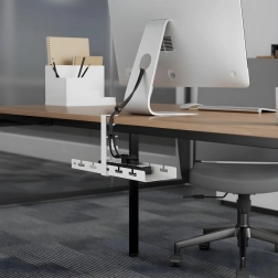 A 40 cm hosszú, asztallap alá szerelhető rendező segít rendszerezni a monitor, töltők és kiegészítők kábeleit, így helyet szabadít fel az asztalon. A leszorítós bilincs fúrásmentes szerelést tesz lehetővé, ezért a bútor sértetlen marad, és a rendező bármikor áthelyezhető.
