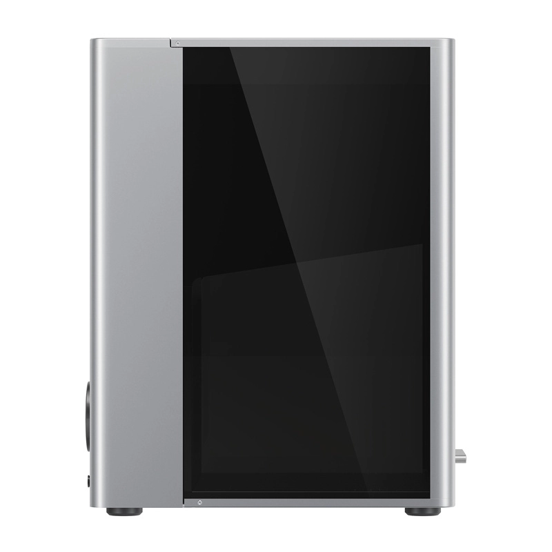 A 220 × 220 mm munkaterület elegendő helyet kínál ékszerekhez, dekorációkhoz és kisebb sorozatokhoz; az Auto Streamline adagolóval akár kb. 220 × 500 mm-re bővíthető a hatékony adagolt gyártáshoz. Az akár 15 000 mm/s sebesség jelentősen csökkenti az átfutási időt. A zárt ház, a hatékony elszívás és a vészleállítás biztonságos működést garantál.
