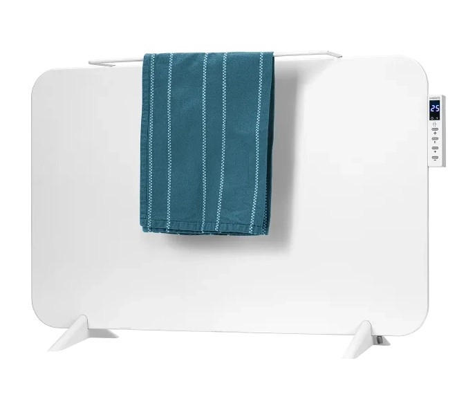 A modern infravörös panel fűtőtest gyors és egyenletes fűtést, takarékos üzemet, elegáns üvegfelületet éles élek nélkül, valamint rugalmas telepítést kínál lábakra vagy falra. A törölközőtartónak, a termosztátnak, az időzítőnek és a Tuya alkalmazáson, illetve távirányítón keresztüli vezérlésnek köszönhetően pontosan a saját igényeihez igazíthatja a kényelmet.