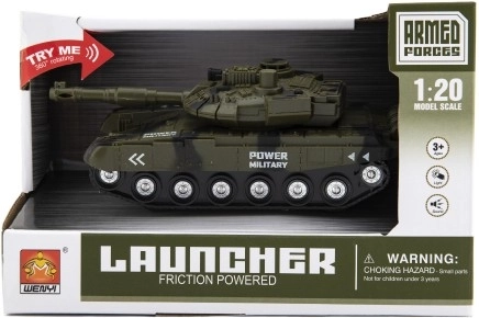 A tank tartós műanyagból készült, és a kicsomagolás után azonnal használatra kész – 3× AG13 elem a csomagban. A játék 3 éves kortól ajánlott, és a kompakt 20 cm-es méretnek köszönhetően otthoni csatákhoz és utazáshoz egyaránt megfelel.