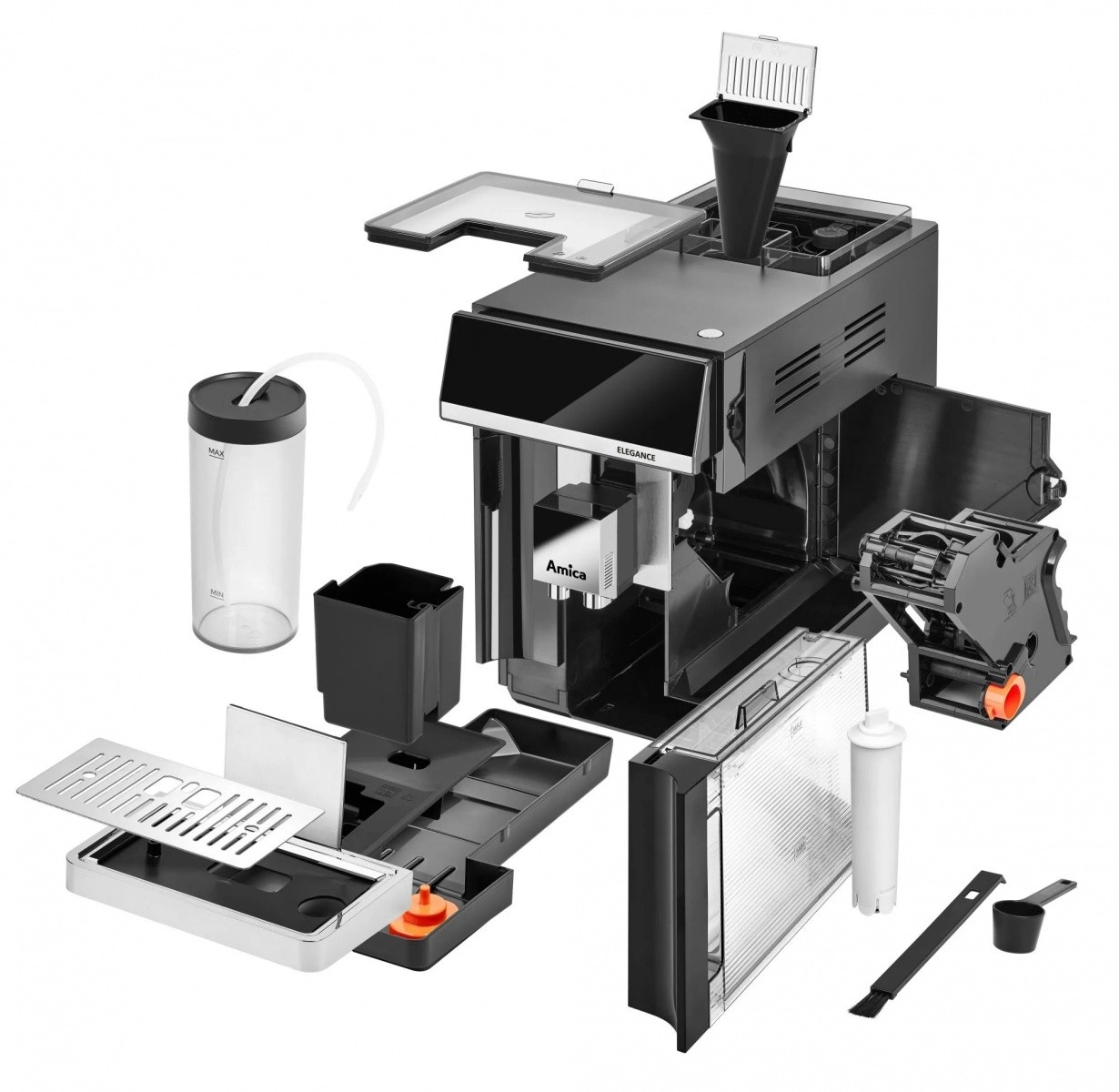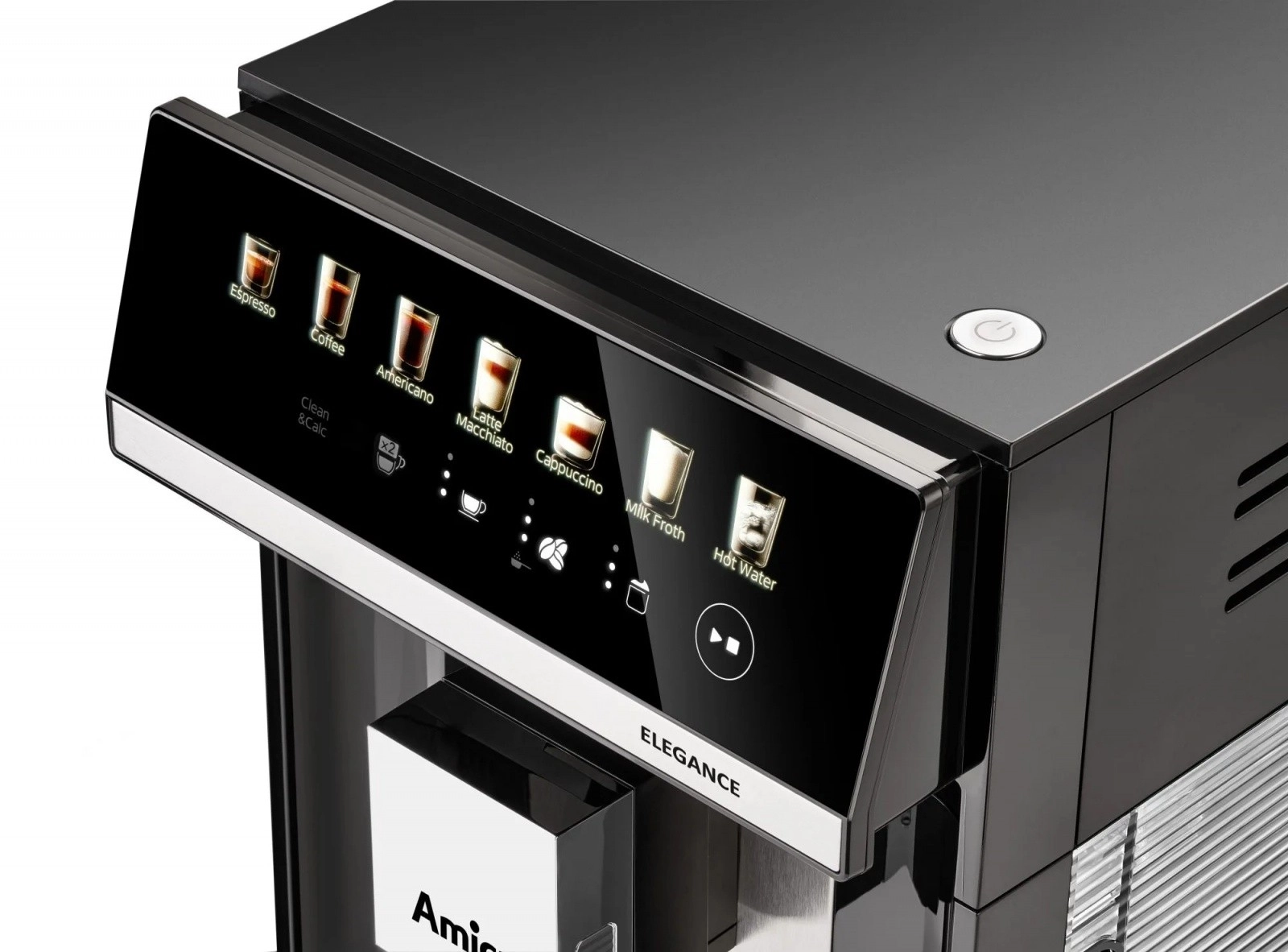 Az Amica Elegance megbízható automata kávégép eszpresszó, cappuccino és caffè latte tökéletes arányú elkészítéséhez. A rozsdamentes acél őrlőnek köszönhetően az őrlés közvetlenül az extrakció előtt történik, és 5 őrlési szint közül választhat az íz intenzitásához. A magas nyomás teljes aromát és krémes habot biztosít, míg a SuperCrema rendszer minden csészét gazdag cremával koronáz meg.