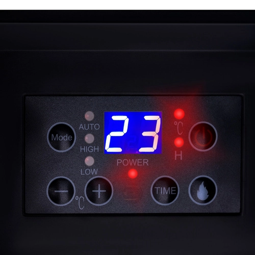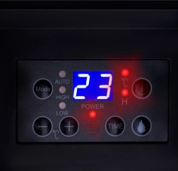 A készülék 3 üzemmódot kínál (magas/alacsony/auto), 26–38 °C hőmérséklet-szabályzást, LCD kijelzőt és 1 órás lépésekben állítható időzítőt (1–8 óra). A praktikus távirányító és az áttekinthető kezelőpanel megkönnyíti a vezérlést a kanapéról. Az Ön biztonságáról hőbiztosíték, túlmelegedés elleni védelem, billenésérzékelő és védőrács gondoskodik. A stabil lábak és az integrált fogantyú könnyű hordozhatóságot biztosítanak.
