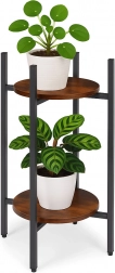 A két kerek polc lehetővé teszi több növény egymás fölé helyezését, látványos vertikális kompozíciót teremtve – ideális kisebb terekbe.
