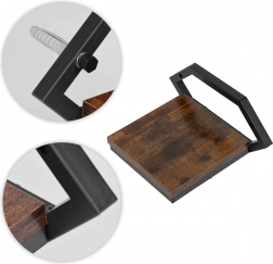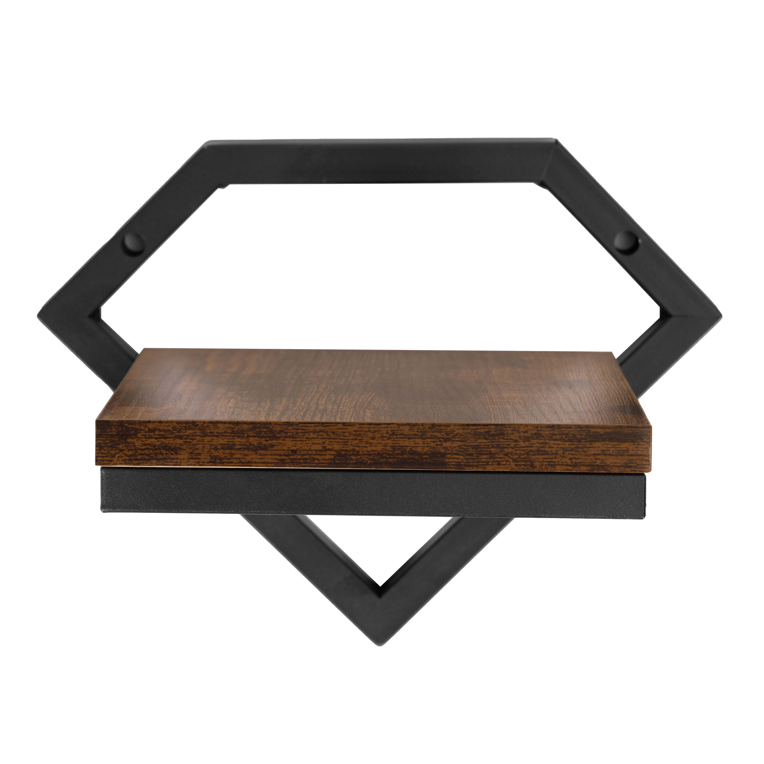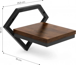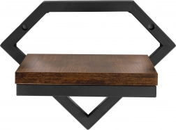 A matt fekete, geometrikus gyémánt keret és a fa dekorú polclap markáns loft elemet alkot, amely nappaliba, konyhába és fürdőszobába is illik.