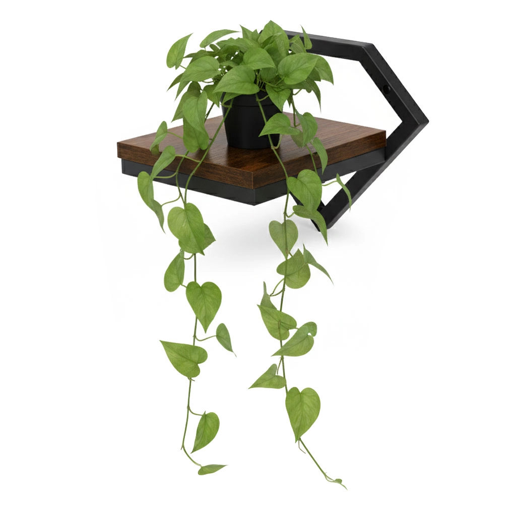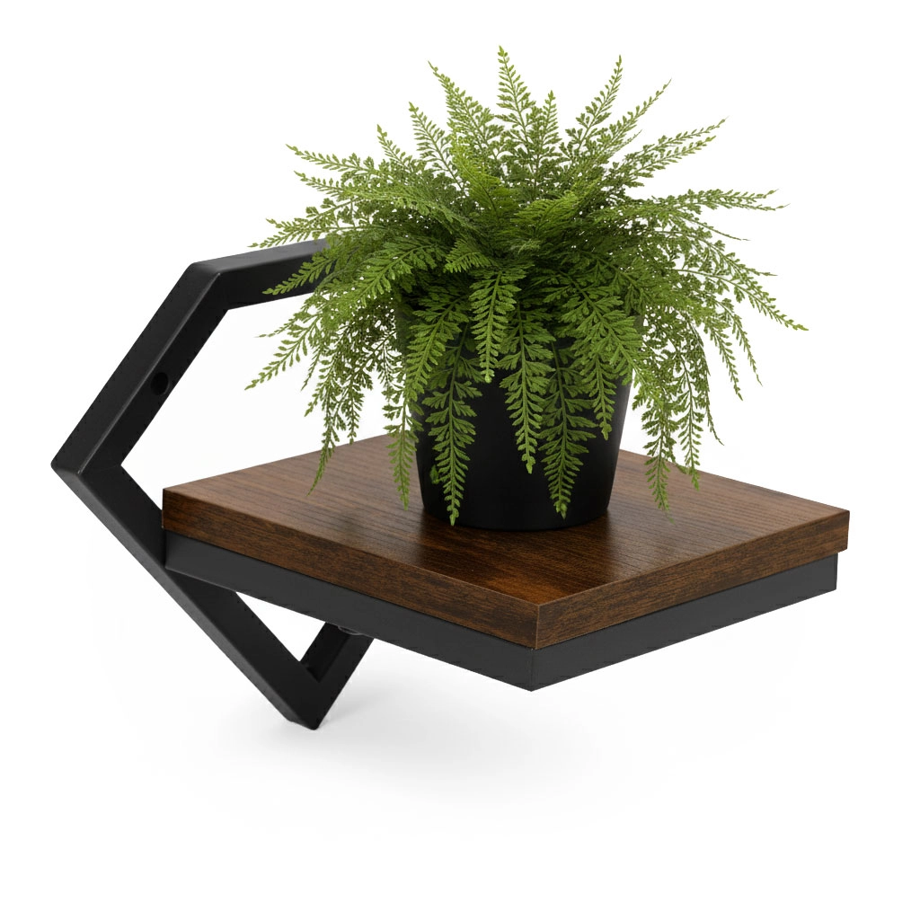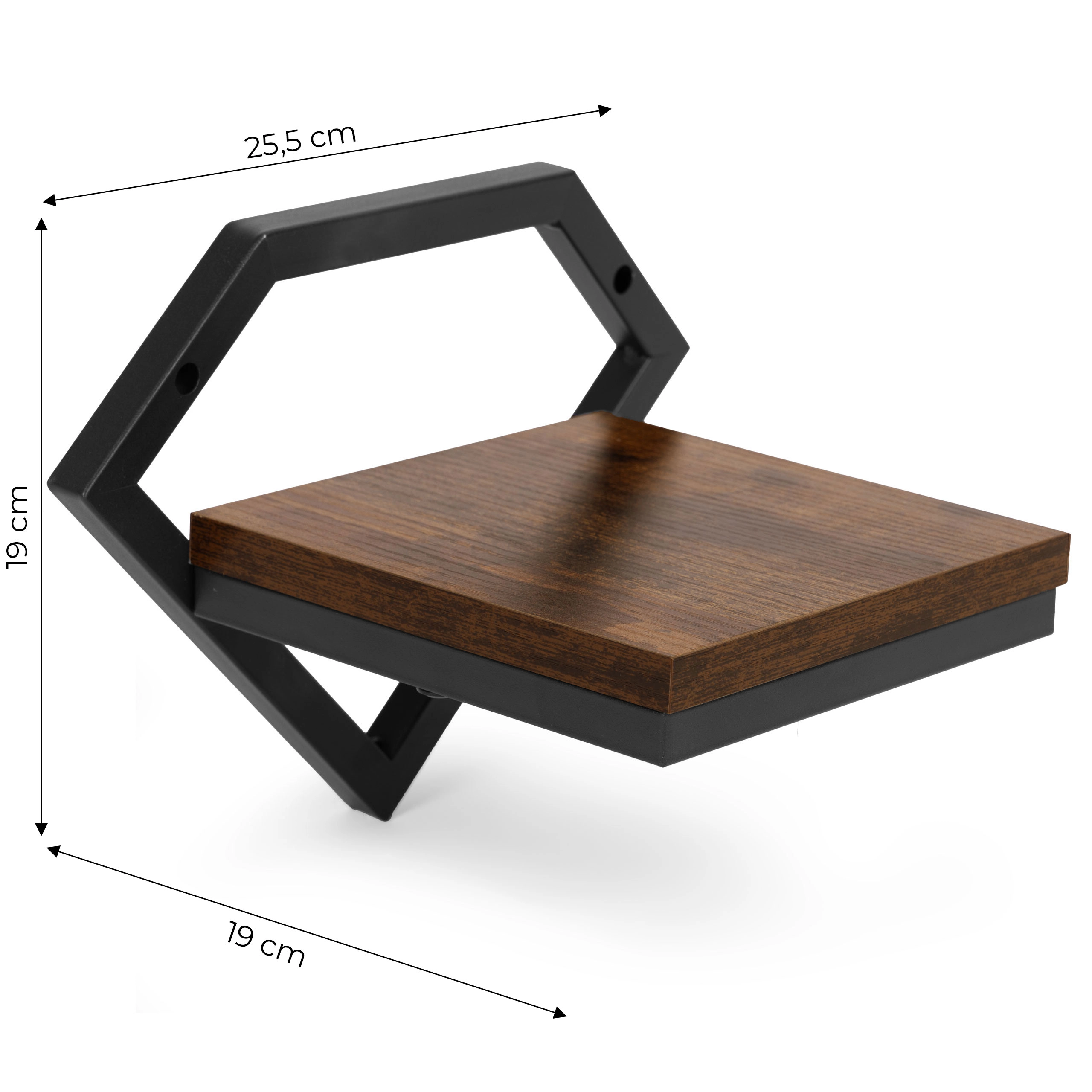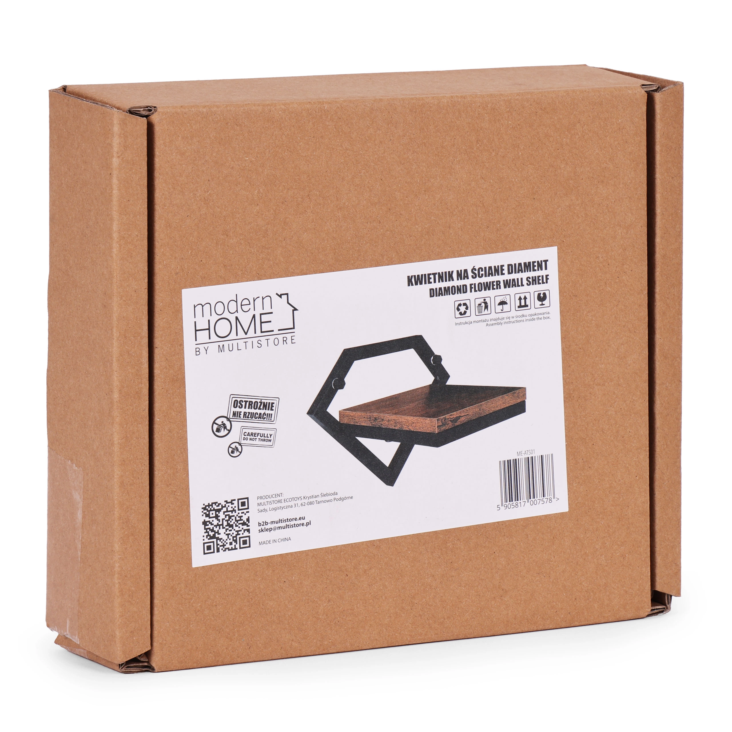 Stílusos fali polc gyémánt alakú acél vázzal és fa hatású lappal, amely remekül kiemeli növényeit és dekorációit. Kínál modern, ipari dizájnt, stabil, porszórt acélszerkezetet, könnyű fali szerelést a csomagban található csavarkészlettel, valamint akár 10 kg teherbírást.