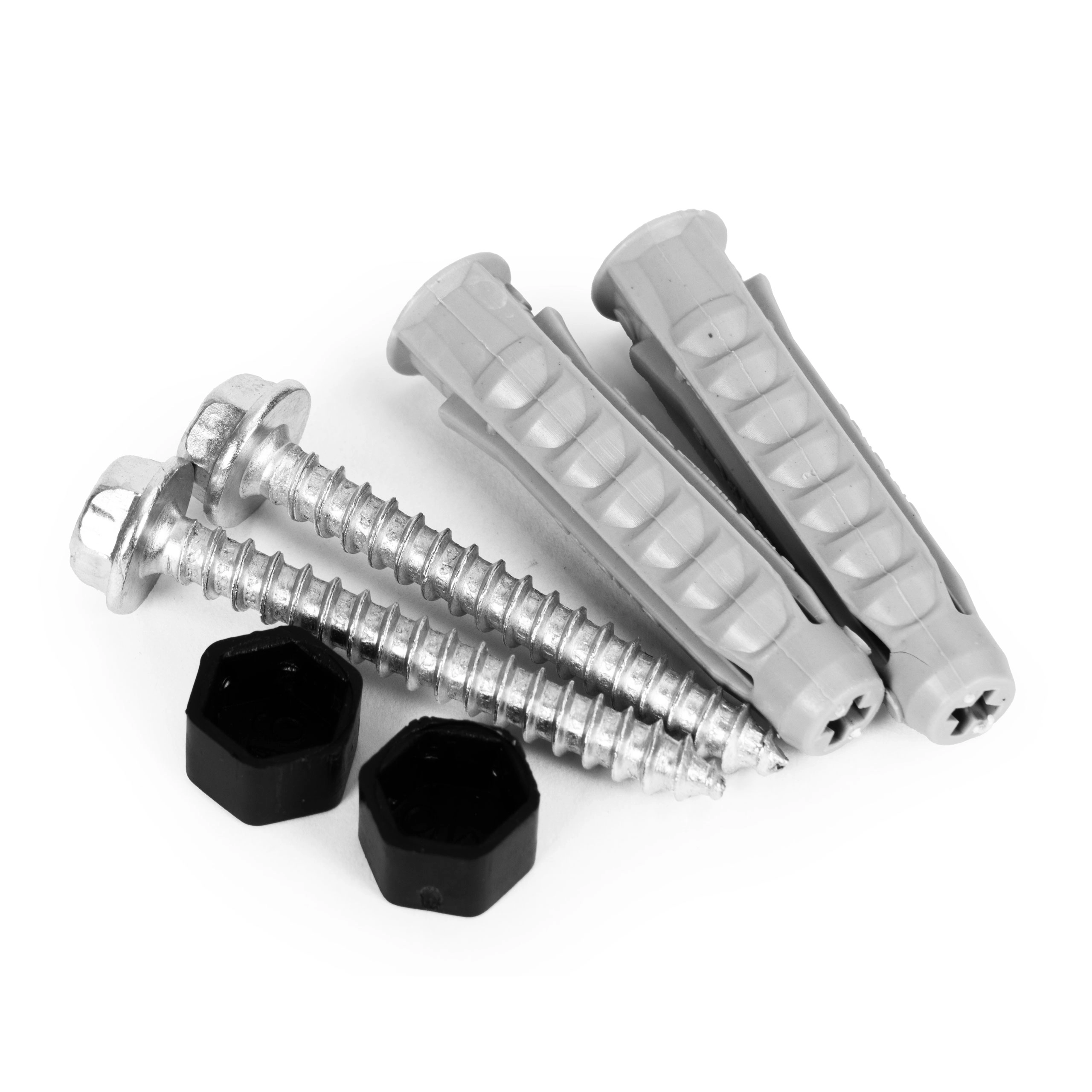A csomag tartalmaz csavarokat, tipliket és takarósapkákat. Az előfúrt lyukak a kereten stabil rögzítést és akár 5 kg teherbírást biztosítanak.