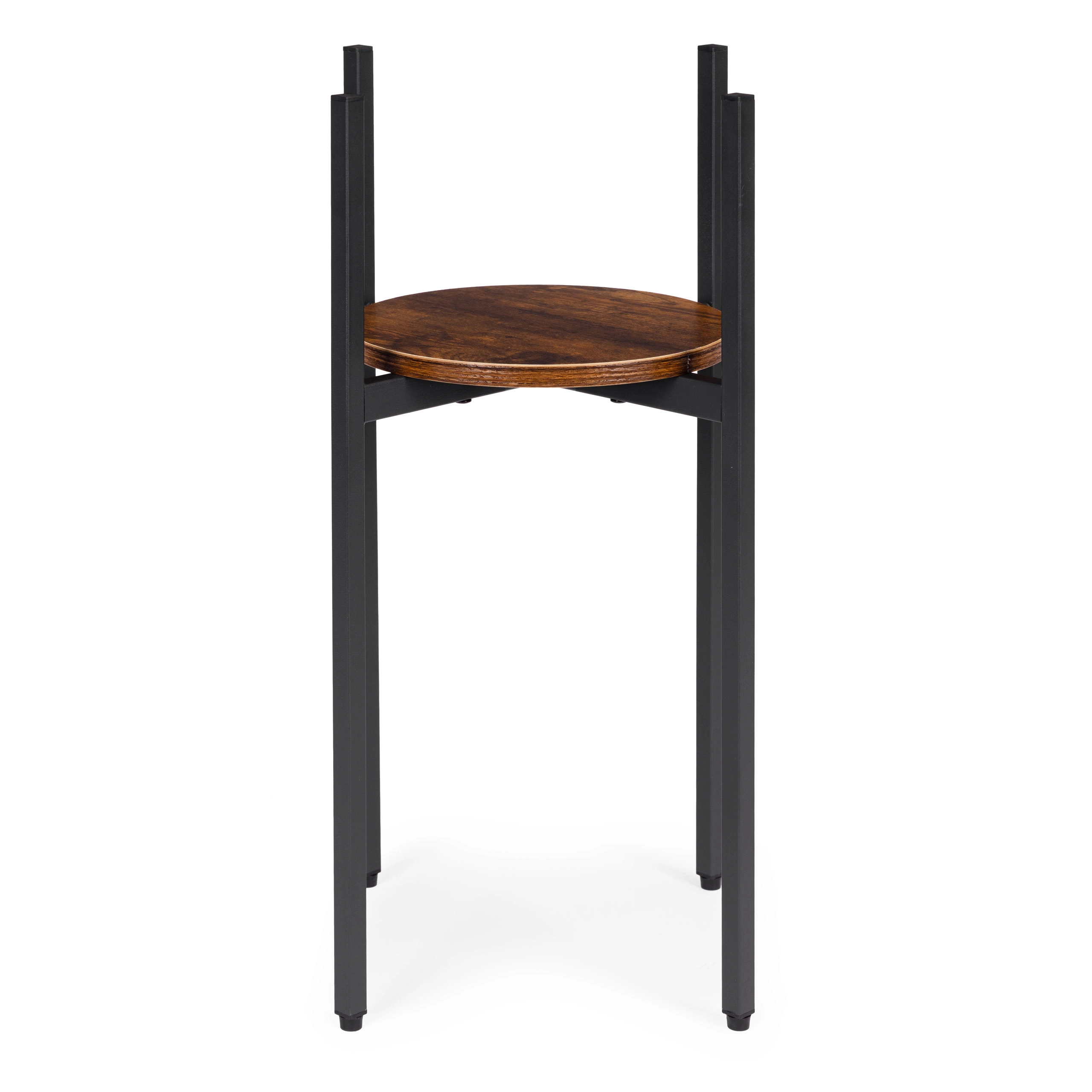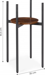 A sötét fa hatású faforgácslapból készült kör alakú lap loft hangulatot kölcsönöz a belső térnek, és stabil felületet biztosít virágoknak, vázáknak vagy kisebb dísztárgyaknak.