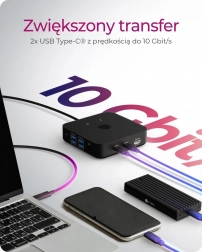 Alakítson ki profi munkaállomást az IB-DK4090-C dokkolóval. Akár három 4K@60 Hz-es monitor támogatása rendkívül éles képet és zökkenőmentes multitaskingot biztosít. Két USB-C port 10 Gb/s átviteli sebességgel gondoskodik a gyors adatmozgatásról és a modern perifériák csatlakoztatásáról, miközben az akár 100 W-os átmenő PD töltés munkavégzés közben is feltölti a laptopot.