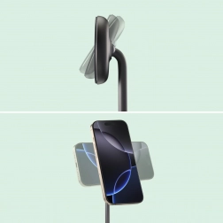 A Qi2 tanúsítvánnyal rendelkező vezeték nélküli töltő gyors és megbízható, kábelek nélküli töltést kínál. Az integrált mágnesgyűrű pontosan igazítja a telefont a maximális hatékonyság és stabilitás érdekében. A 0–65°-ban állítható dőlésnek és a 360°-os forgatásnak köszönhetően kényelmesen követheti az értesítéseket, videóhívásokat és filmeket álló és fekvő módban is.