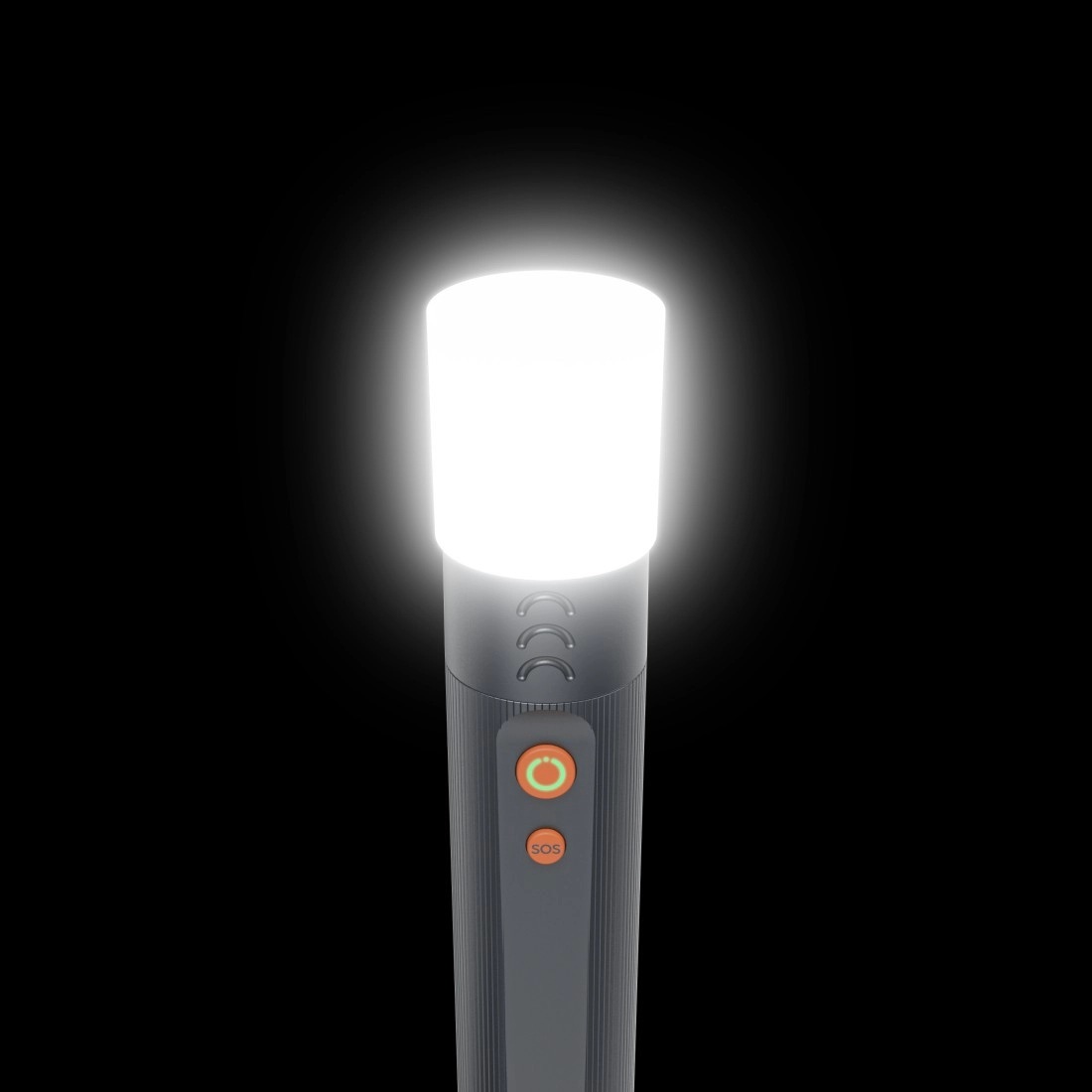 Az alumínium ház akár 1,5 m-es zuhanásnak is ellenáll. A levehető akasztóval felakasztható, így munka vagy kempingezés közben szabadon maradnak a kezek.