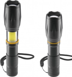 A kompakt és strapabíró 2 az 1-ben LED zseblámpa 200 lm fényáramot, akár 100 m hatótávot és 3 fényüzemmódot kínál mindennapi használatra és szabadtéri tevékenységekhez. A zoom funkciónak köszönhetően fokozatmentesen válthat a széles megvilágítás és a távoli, szűk fénykúp között. Az oldalsó COB LED egyenletes, felületszerű fényt biztosít, ideális munkához és vészhelyzetekhez.