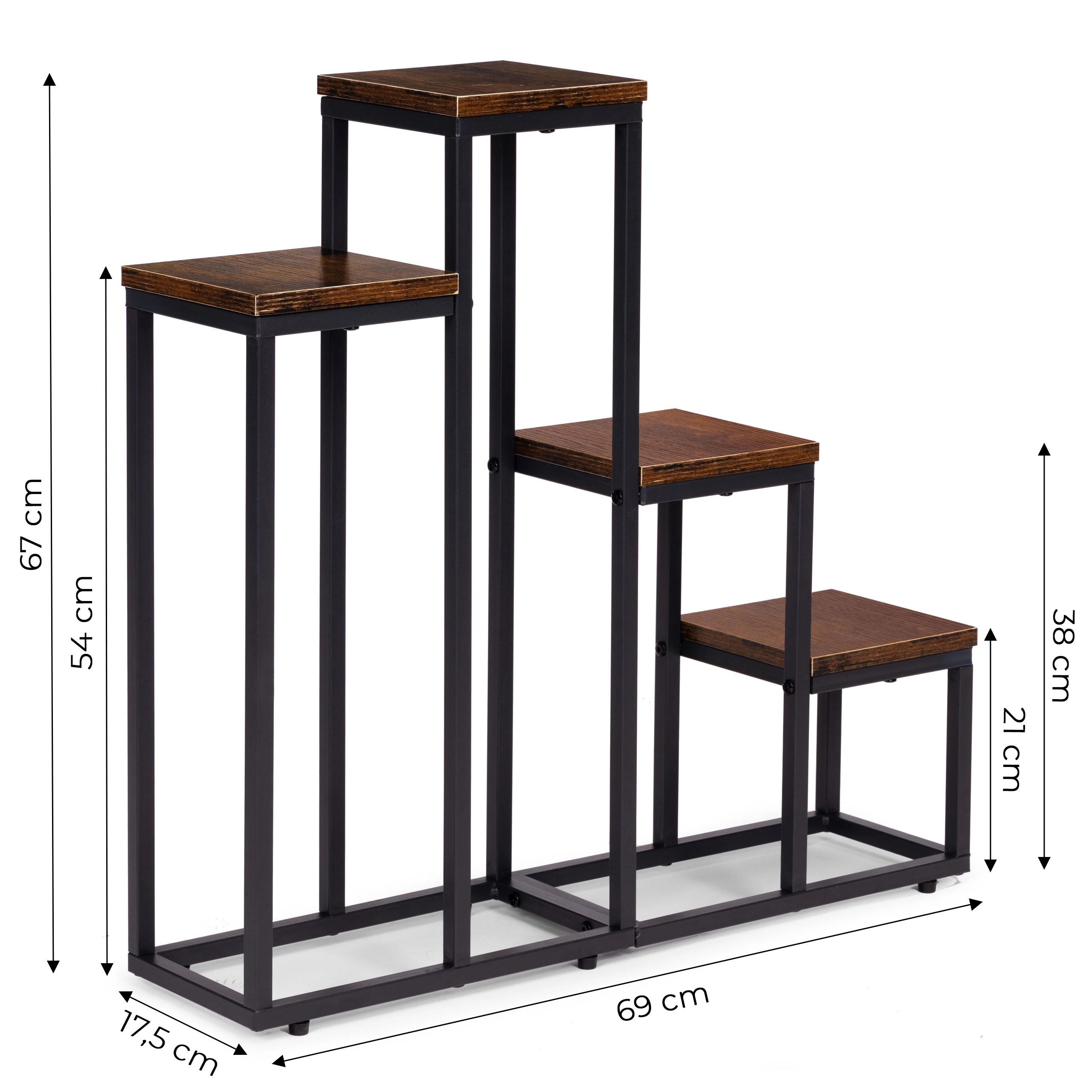 Alkoss kiemelkedő zöld sarkot. Ez a loft virágtartó állvány a modern ipari dizájnt ötvözi a strapabíró acél szerkezettel és fa dekorú polcokkal. A kompakt méreteknek köszönhetően könnyen kihasználhatod a teret, és a növényeket áttekinthető szintekbe rendezheted – a konyhai fűszernövényektől az előszobai dísznövényekig.