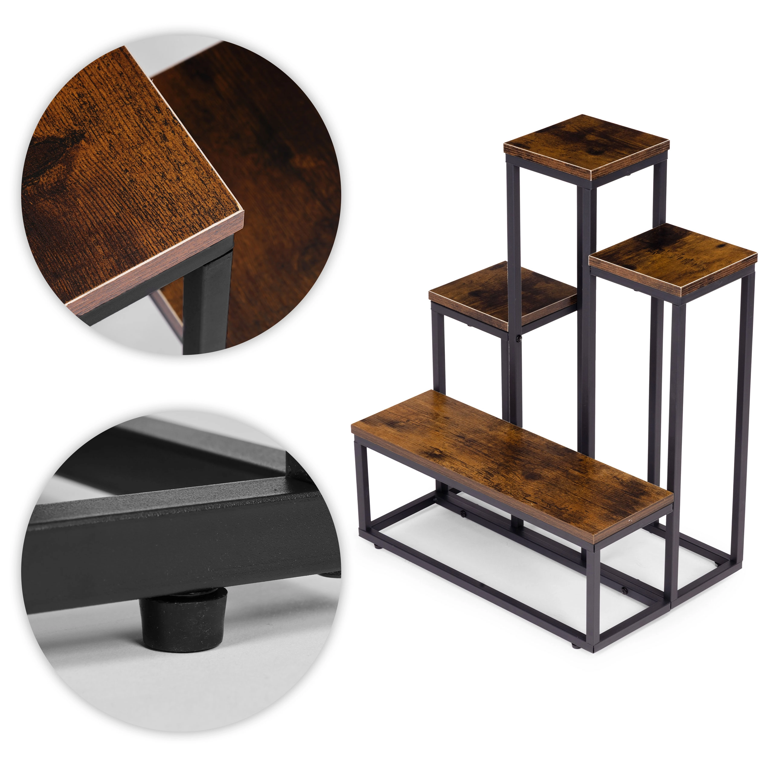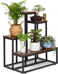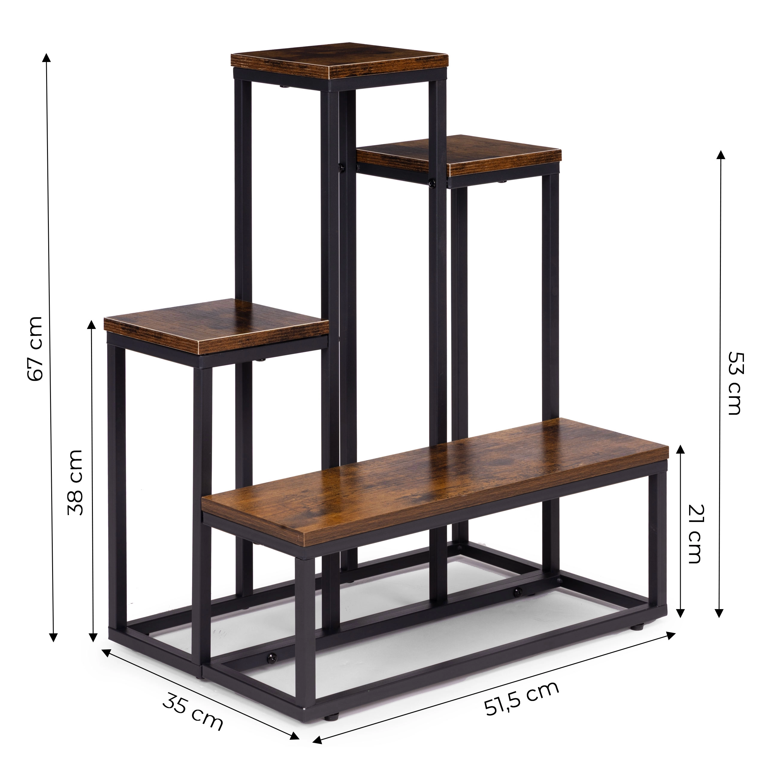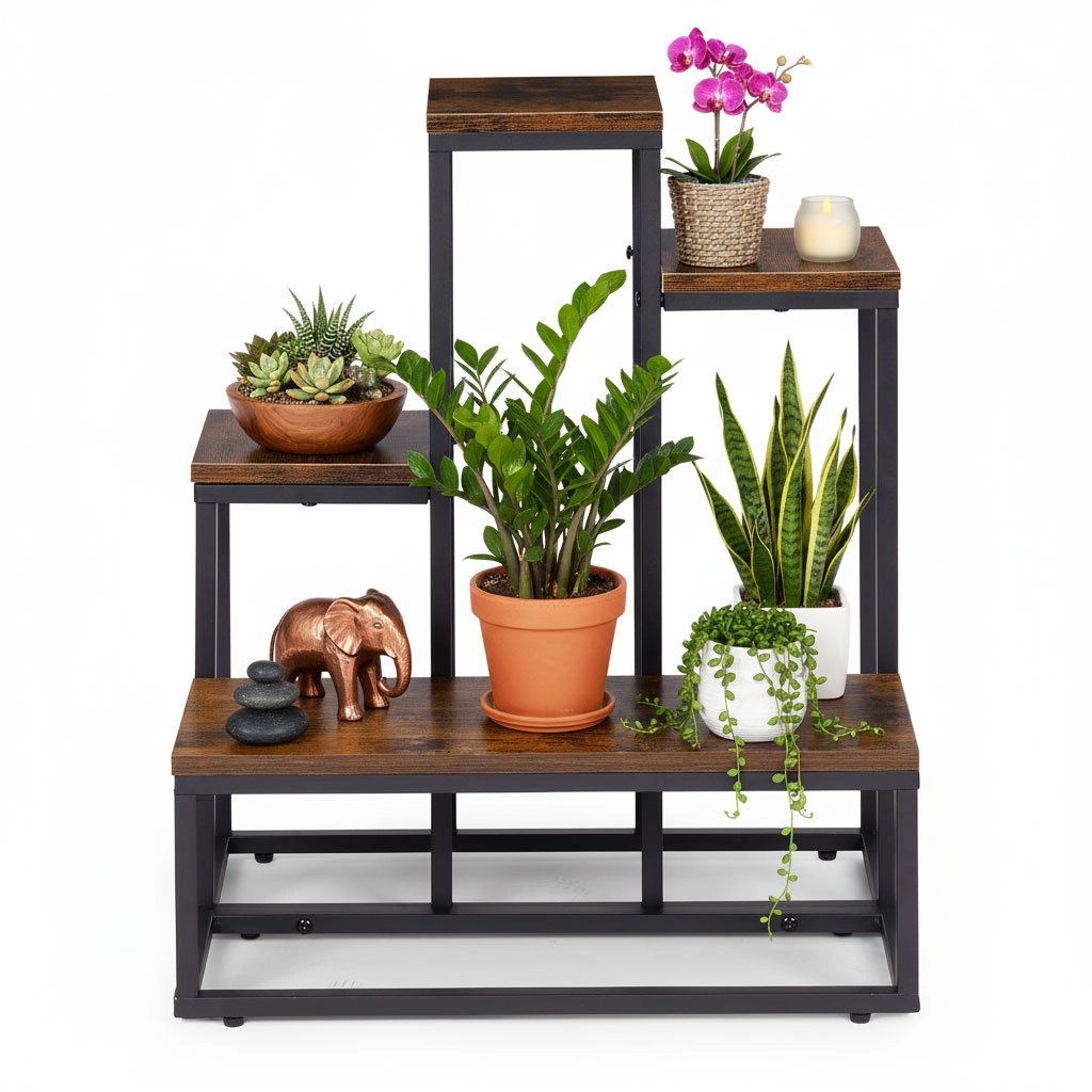 Négy, lépcsőzetesen elhelyezett polc biztosítja az optimális fényviszonyokat és az átlátható elrendezést a növények és dekorációk számára kis helyen is.