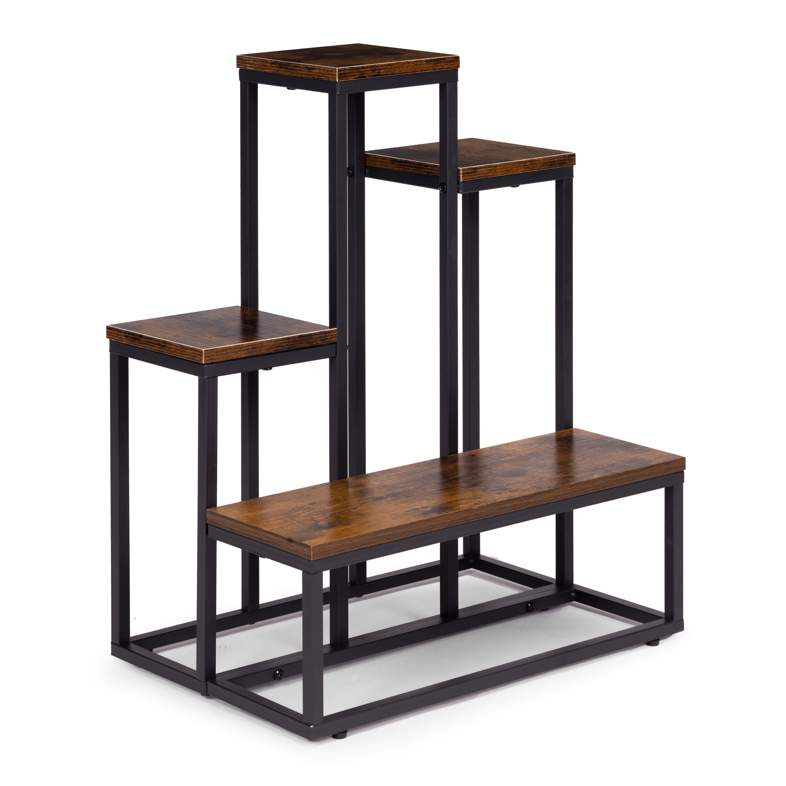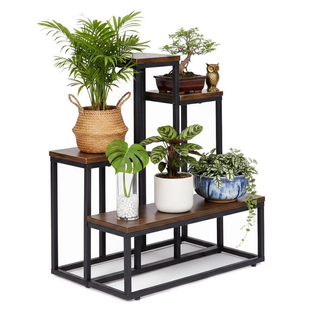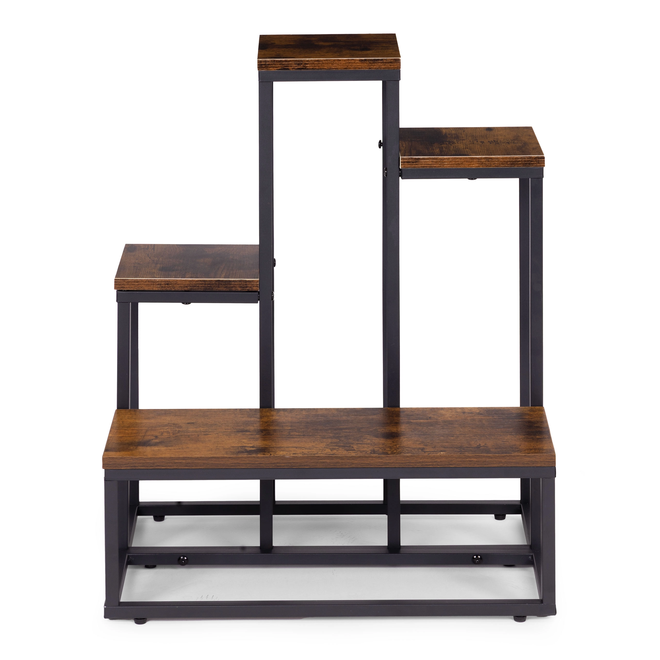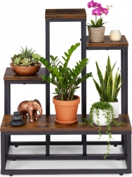 Négy, lépcsőzetesen elhelyezett polc biztosítja az optimális fényviszonyokat és az átlátható elrendezést a növények és dekorációk számára kis helyen is.