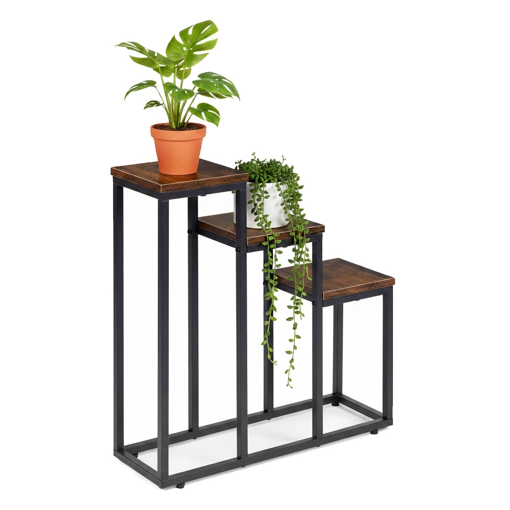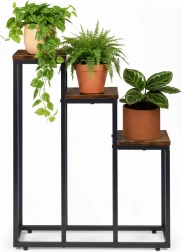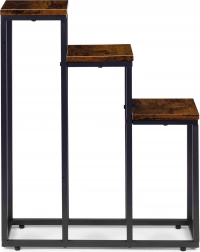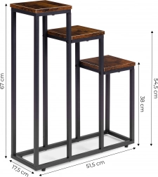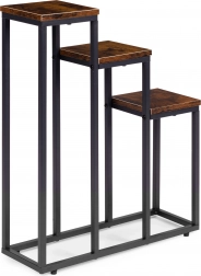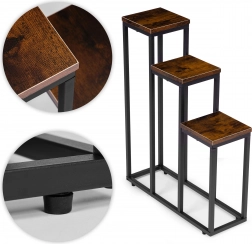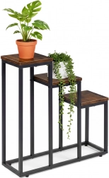 A modern, háromszintes virágtartó helytakarékos megoldás, amellyel látványos növénykompozíciót hozhat létre nappaliban, dolgozószobában vagy kereskedelmi terekben. Stabil, porszórt acél szerkezettel, 3 tartós DTD polccal fa dekorral és csúszásgátló lábakkal a padló védelmére. Egy polc maximális teherbírása 5 kg.