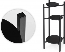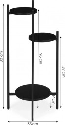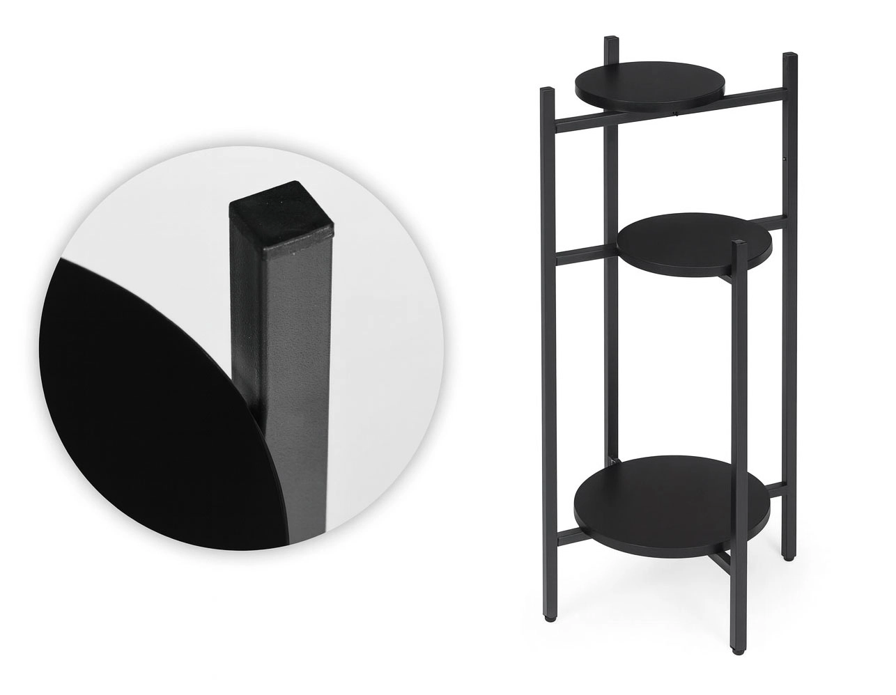Három kör alakú polc különböző magasságokban, hogy stílusosan helyezhesse el a növényeket anélkül, hogy értékes padlófelületet foglalna. Ideális nappaliba, dolgozószobába és előszobába.