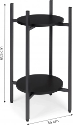 Két kerek polca bőséges helyet kínál növényeknek és dekorációknak anélkül, hogy túlterhelné a belső teret. Kiváló választás kisebb és nagyobb helyiségekbe egyaránt.