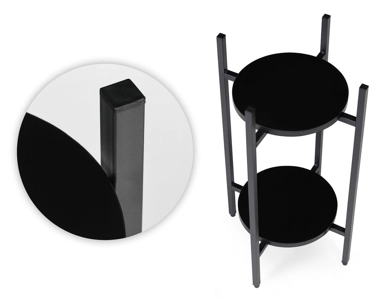 A porszórtan festett acél szerkezet hosszú élettartamot és stabilitást biztosít, a csúszásgátló lábak pedig óvják a padlót. Kompakt méreteinek köszönhetően kisebb helyiségekbe is könnyen beilleszthető, és akár kis lerakóasztalként is használható gyertyákhoz, könyvekhez vagy dekorációkhoz.