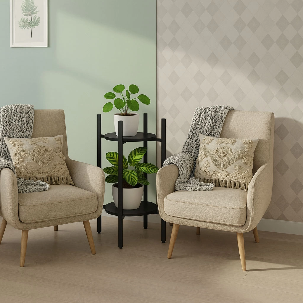 Fedezze fel a praktikus megoldást zöld dekorációi számára. A MODERNHOME kétszintes virágtartó a letisztult, modern megjelenést ötvözi a helytakarékos funkcionalitással. A kerek fém polcok elegánsan emelik ki a konyhai fűszernövényeket, az előszobai páfrányokat és a nappali dísznövényeket, miközben rendezetté és légessé teszik a belső teret.