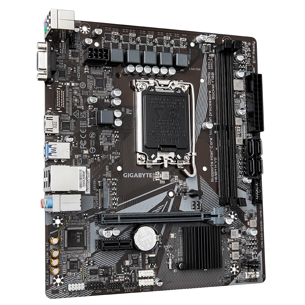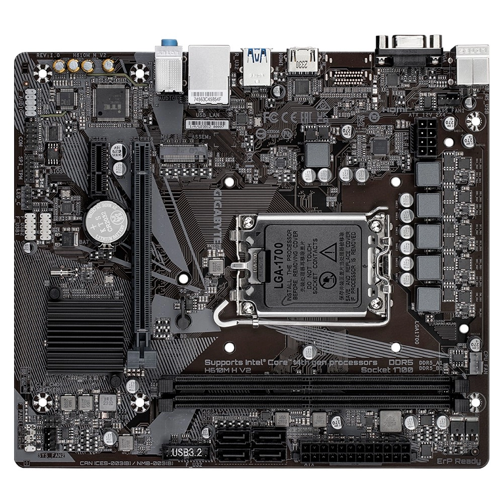 Építsen megbízható számítógépet munkához és szórakozáshoz. Ez az mATX alaplap Intel H610 chipkészlettel támogatja a 12., 13. és 14. generációs Intel Core processzorokat LGA1700 foglalattal, és modern felszereltséget kínál kompakt kivitelben. A kétcsatornás DDR5 memória és a NVMe M.2 (PCIe 3.0 x4) foglalat révén a rendszer és az alkalmazások fürge reakcióját érheti el.