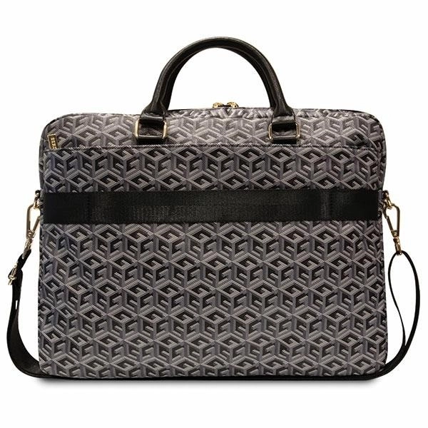 A GUESS Gcube Stripes táska ideális választás a mindennapos laptop- és dokumentumhordozáshoz. Az ikonikus G Cube minta, a fekete szegélyek és a aranyszínű fém részletek a luxus megjelenést hangsúlyozzák, míg a minőségi anyagok hosszú élettartamot biztosítanak. A központi GUESS logó a hitelességet és a prémium eredetet igazolja.