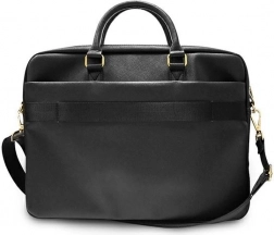 A GUESS elegáns üzleti táskája 16"-os laptop biztonságos tárolására és a napi felszerelés rendszerezésére készült. A Saffiano textúrájú luxus felület rendkívül ellenálló a kopással, deformációval és karcolásokkal szemben, miközben megőrzi a reprezentatív megjelenést. Az elülső részt diszkrét dombornyomott GUESS logó és aranyszínű fém kiegészítők díszítik, kiemelve a prémium karaktert.