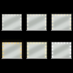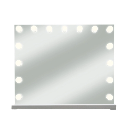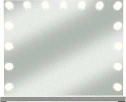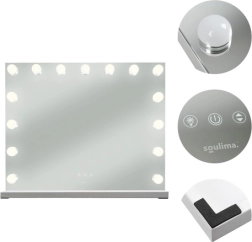 Az elegáns Soulima LED sminktükör 58 × 46 cm méretben a HOLLYWOOD stílust professzionális megvilágítással ötvözi. 15 energiatakarékos LED izzó, érintőpanel fokozatmentes fényerő-szabályzással és 3 fényhőmérséklettel (meleg, semleges, hideg) biztosítja az ideális feltételeket sminkeléshez, bőrápoláshoz és hajigazításhoz. A nagy felület, a szabadon állítható vagy falra akasztható kivitel és a duális tápellátás USB/230 V praktikus és stílusos kiegészítővé teszi a fésülködőasztalon vagy a szépségszalonban.