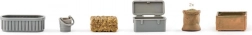 - Emelt faház korláttal és létrával, karámok, kézikocsi, mini szerszámok, emberfigura, állatfigurák (pl. elefánt, elefántkölyök, zsiráf, zebra, zebracsikó, oroszlán, krokodil, víziló, antilop, varacskosdisznó, szurikáta, madarak stb.)
