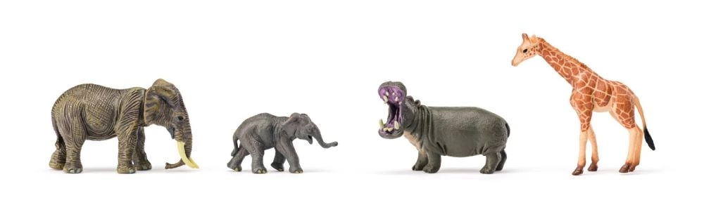 A kölyköktől a felnőtt állatokig – elefántok, zsiráfok, zebrák, antilopok és víziló kombinációja támogatja a kreatív jeleneteket és a hosszan tartó játékot.