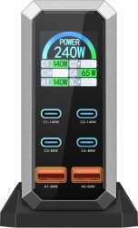 Univerzális töltőt keres otthonra, irodába vagy utazáshoz? A BlitzWolf BW‑S31 a 240 W csúcsteljesítményt kompakt méretekkel és okos teljesítményelosztással ötvözi. Két USB‑C port (C1/C2) akár 140 W-ot kínál (PD 3.1, PPS) a nagy teljesítményű laptopok, például a 16"‑os MacBook Pro gyors töltéséhez, a további USB‑C portok (C3/C4) 65 W-ot biztosítanak, míg a két USB‑A port QC 3.0 támogatással akár 60 W-ot nyújt.