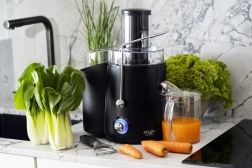 A nagy teljesítményű ADLER AD 4127 gyümölcscentrifuga 1000 W-os motorral gyorsan készít friss leveket gyümölcsből és zöldségből. A rozsdamentes, finom szűrő tiszta, vitaminokban gazdag levet biztosít, miközben a rost külön tartályba kerül. A praktikus 1 l-es kancsó, a széles betöltőnyílás, a biztonsági retesz és a mosogatógépben mosható alkatrészek ideális segítőtárssá teszik a mindennapi egészséges italokhoz.