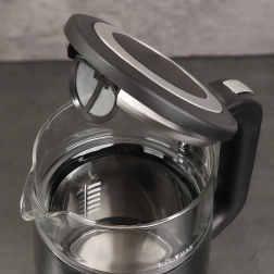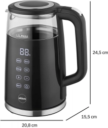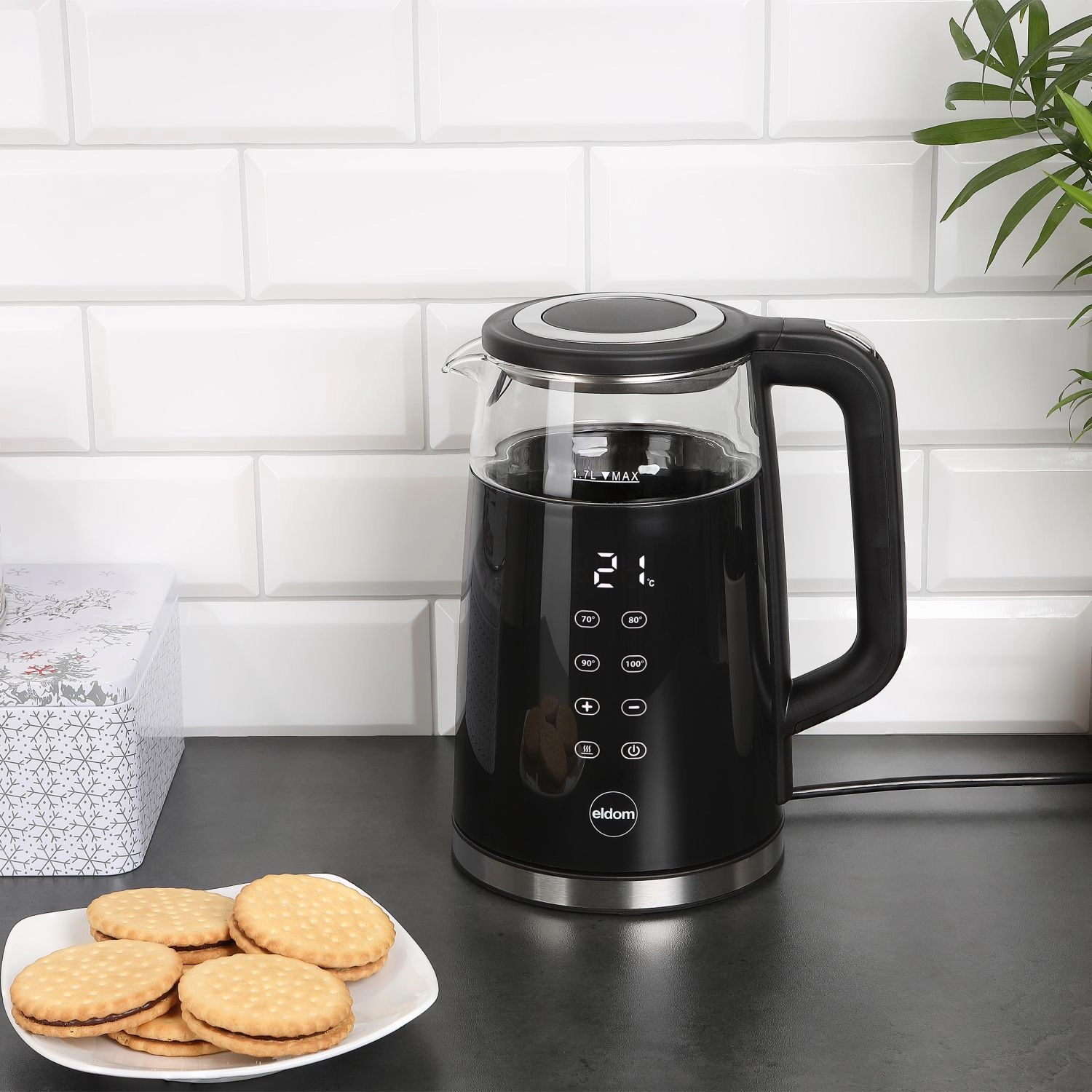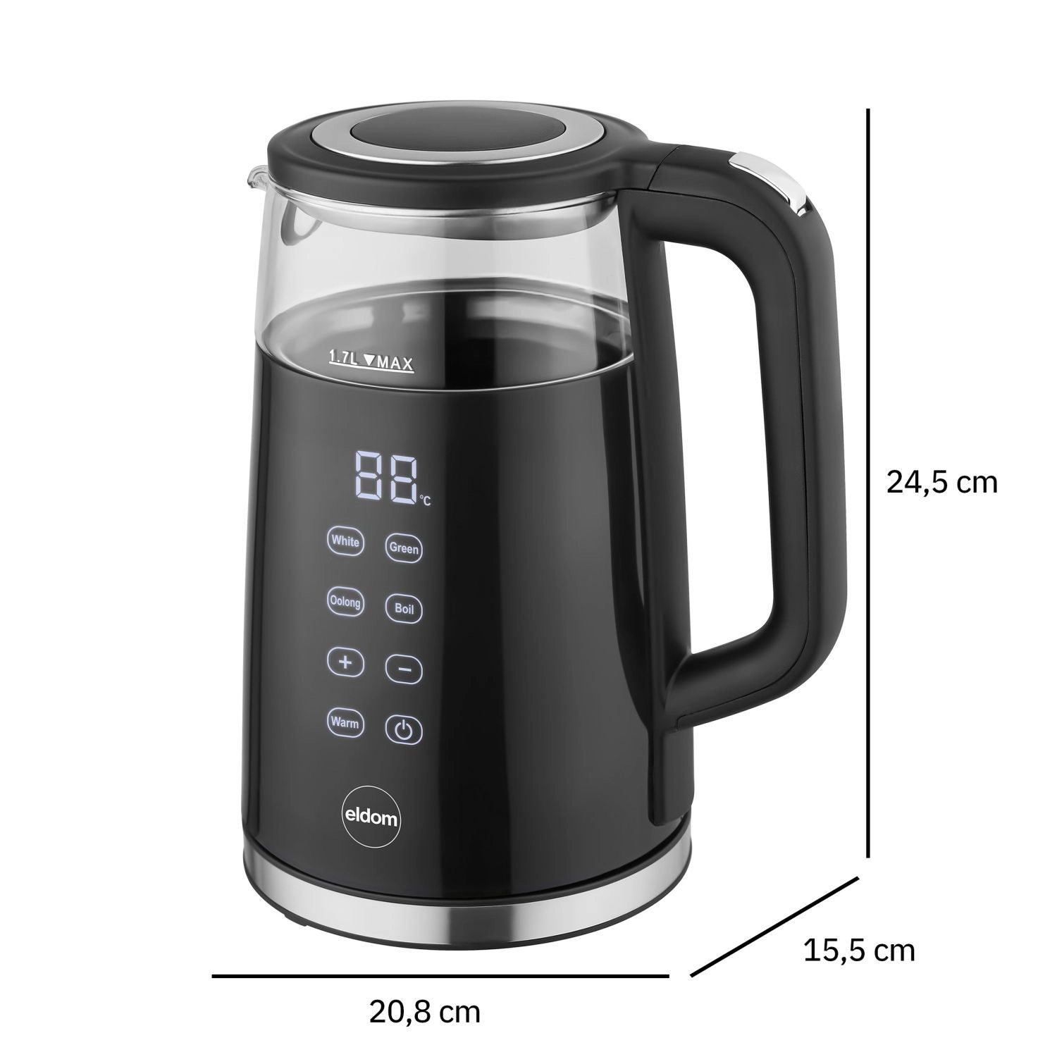 Élvezze a tökéletesen elkészített italokat ezzel az elegáns üveg vízforralóval, amely 2200 W teljesítménnyel, 1,7 l űrtartalommal és pontos, 13 lépéses hőmérséklet-szabályozással rendelkezik. 4 előre beállított módot kínál (70/80/90/100 °C), melegen tartás funkciót akár 2 órán át, érintőpanelt LED kijelzővel, valamint biztonsági rendszert automatikus kikapcsolással. Az üvegtest vízszintjelzővel és finom vízkőszűrővel ideális a konyhába és az irodába egyaránt.