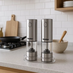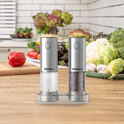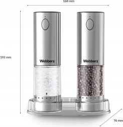 Ez a sokoldalú elektromos őrlőkészlet ideális sóhoz, borshoz, szárított fűszerekhez és egyéb fűszerkeverékekhez. Az egygombos, egyszerű vezérlésnek és az átlátszó tartálynak köszönhetően mindig látod a mennyiséget. Az LED fény gyenge megvilágításnál is megkönnyíti az ízesítést.