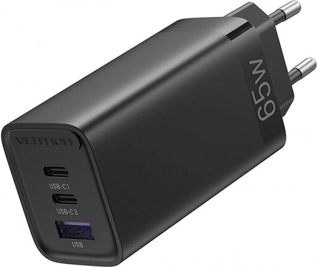 Élvezze a gyors és biztonságos töltést az új generációs Vention töltővel. A modern GaN technológia nagyobb hatékonyságot biztosít kisebb házban, így a töltő könnyű, kompakt és készen áll a mindennapi utazásra. Két USB‑C port (akár 65 W és 30 W) és egy USB‑A (30 W) lehetővé teszi akár három eszköz egyidejű töltését.