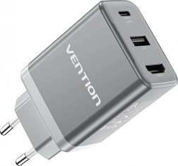 A kompakt Vention hálózati töltő GaN technológiával ötvözi a gyors PD töltést akár 65 W‑ig, a USB‑C + USB‑A portokat és a HDMI 4K@60 Hz kimenetet. Tölts egyszerre akár három eszközt, csatlakoztass külső monitort, és élvezd a univerzális kompatibilitást Windows, macOS, Android és más rendszerekkel – biztonságosan a intelligens védelemnek köszönhetően túlfeszültség, túlmelegedés és rövidzárlat ellen.